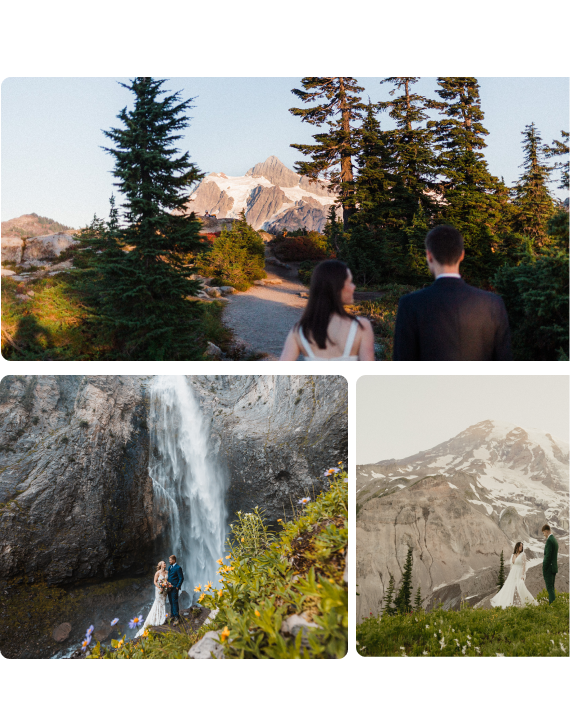 We never take fees from couples. Everything goes directly to your photographer so pricing is transparent with no surprises. We partner with Washington photographers who know these landscapes deeply.